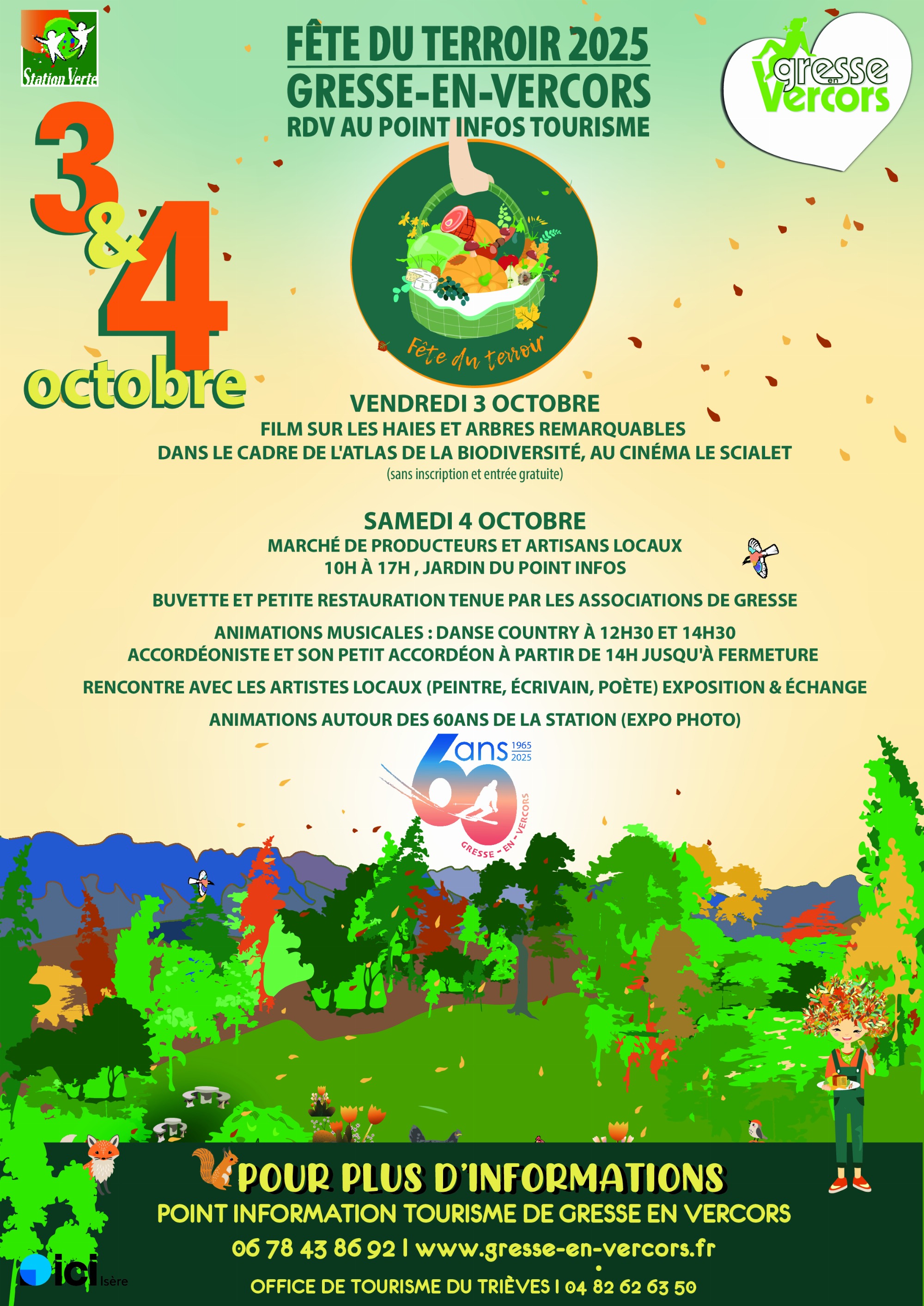 Fête du terroir devant le Point Info Tourisme avec la présence de producteurs et artisans locaux.
