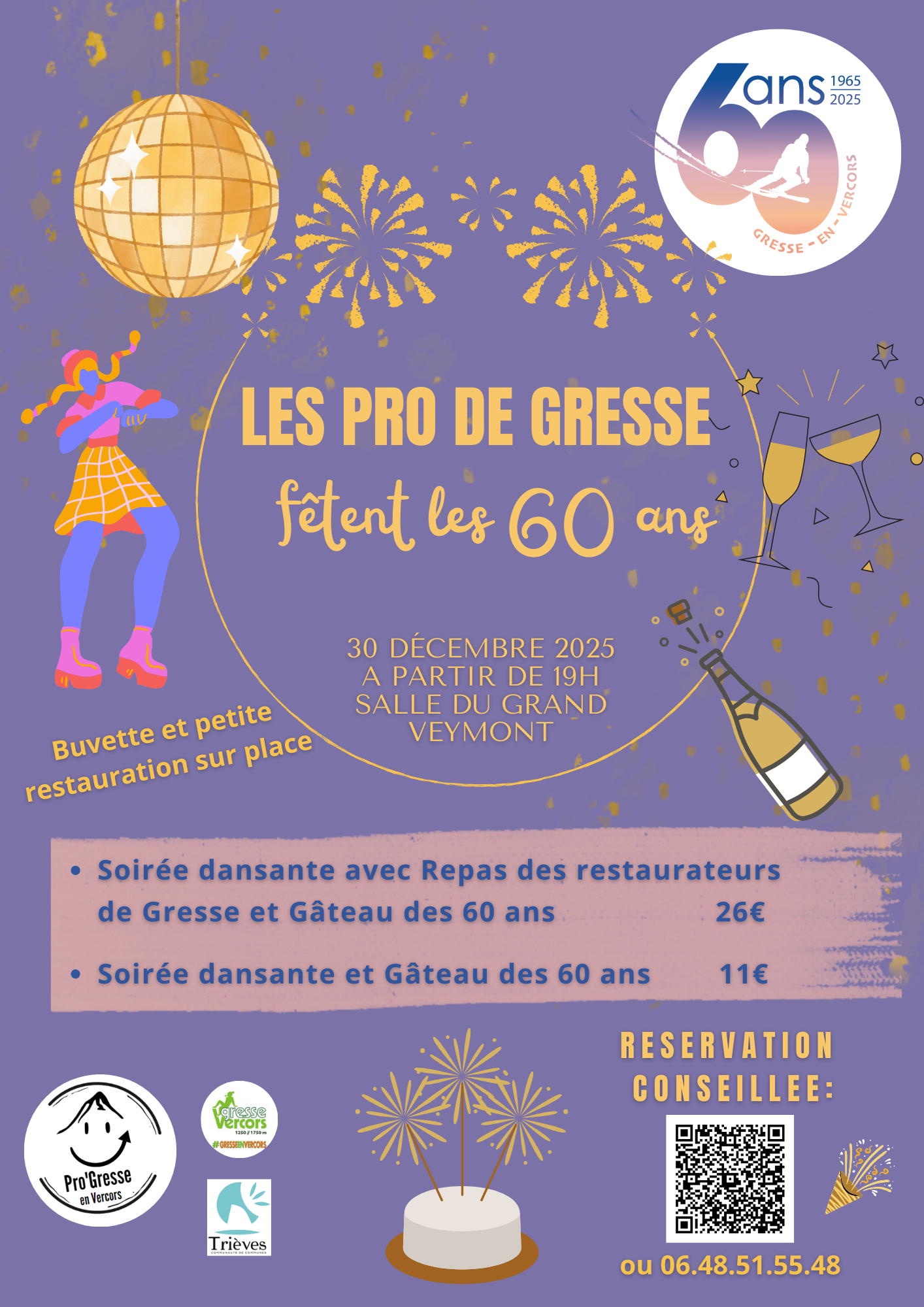 Au programme : repas convivial, ambiance de folie et piste de danse enflammée animée par notre DJ qui fera vibrer toutes les générations.
