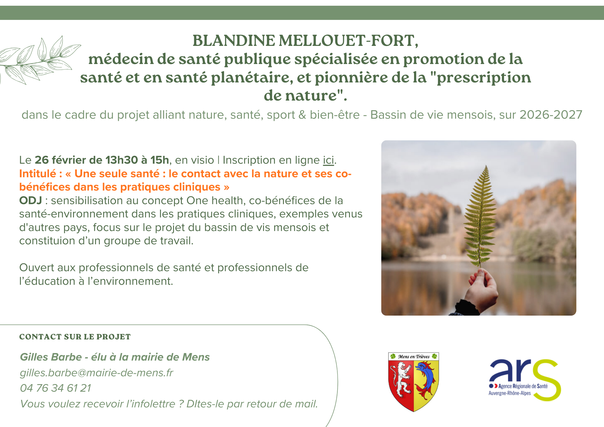 Dans le cadre du projet alliant nature, santé, sport & bien-être - Bassin de vie mensois, sur 2026-2027. Porté par la commune de Mens, financé par l'ARS.