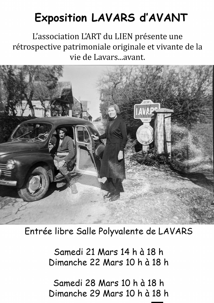 Exposition Lavars d'avant ! et si vous replongiez dans l'histoire de notre village ? Des grands panneaux, des films et beaucoup de documents et photos qui présentent des récits, témoignages, moments de vie agricole et quotidienne.