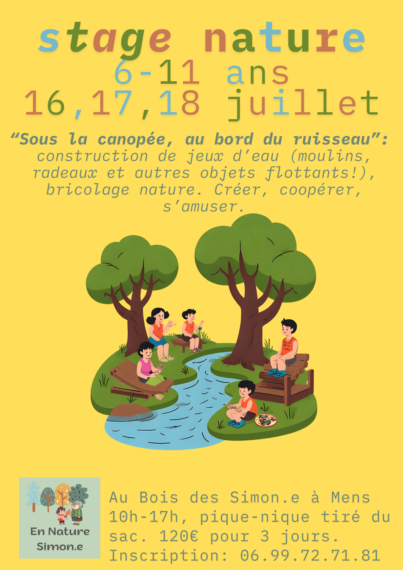 > construction de jeux d’eau (moulins, radeaux et autres objets flottants!), bricolage nature. Créer, coopérer, s’amuser.