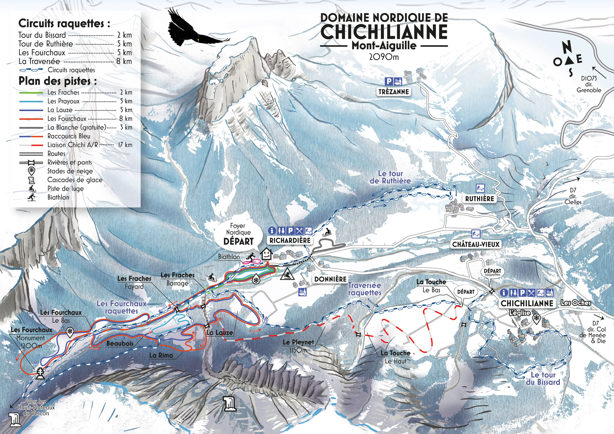 Sous les escarpements du Mont Aiguille et des falaises des Hauts-Plateaux, en forêt ou sur les prairies enneigées, le domaine nordique de Chichilianne convient aux pratiquants de tous les niveaux.