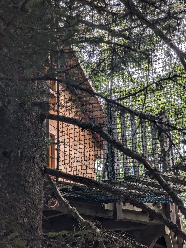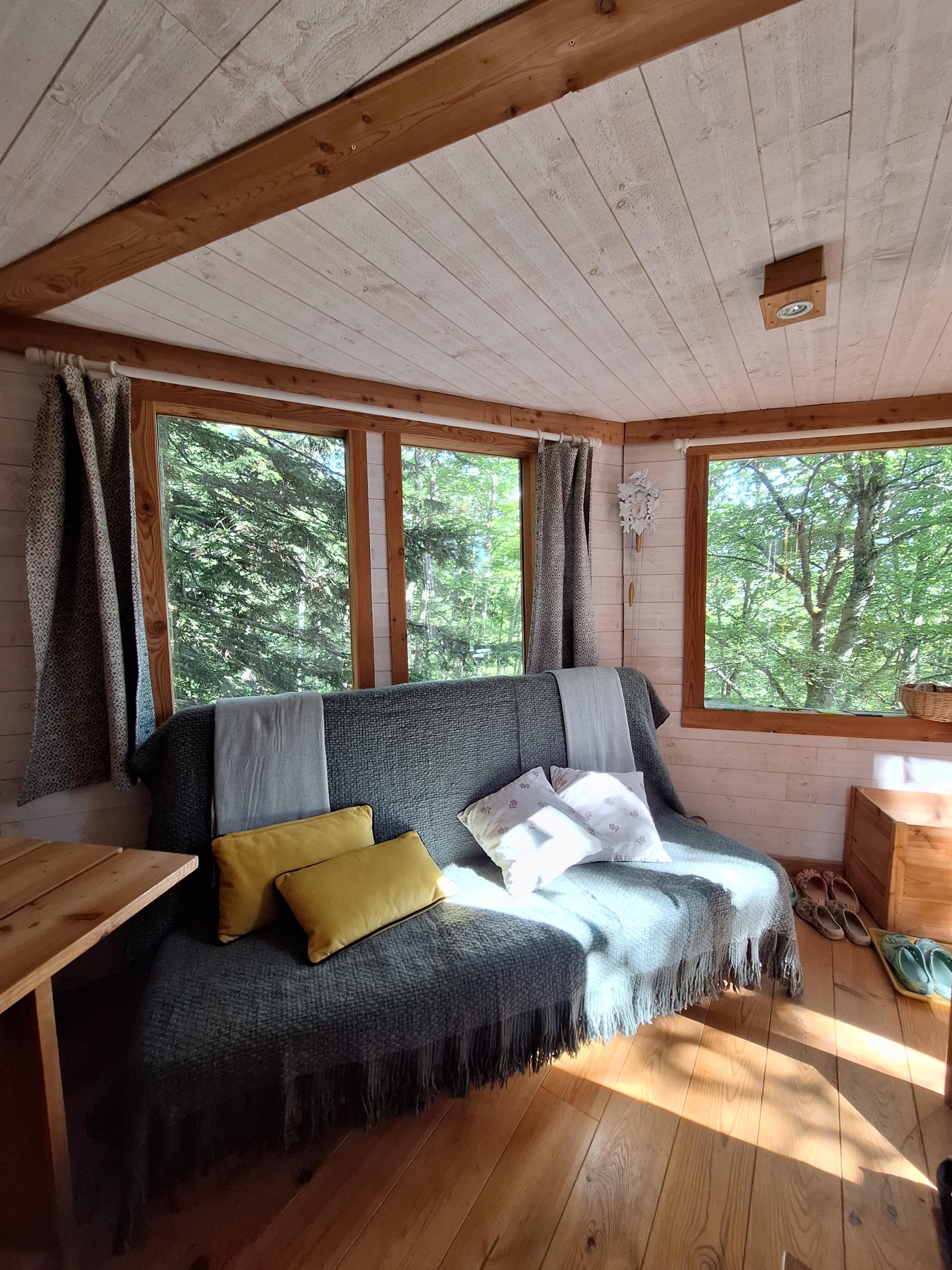 Votre nuit sera absolument inoubliable. L'hébergement se fait dans une de cabanes perchées "Nuits de Cimes", lovées à 1300 m d'altitude, au milieu de la forêt. Malgré l'isolement, les conforts sont assurés : lits faits, chauffage, électricité solaire et toilettes sèches. La nuitée inclut un repas du soir simple et le petit-déjeuner livré sur place. Le véritable luxe réside dans le silence : vous écoutez les feuillages frémir, vous attendez peut-être que le hibou vienne se poser sur le toit.
