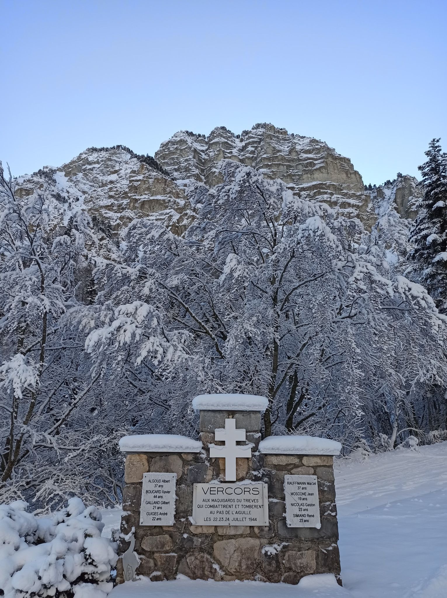 From the Chichilianne Nordic center at La Richardière, follow marker n°4 towards the valley floor. The route gently descends towards Les Fourchaux, with no particular difficulty. Once at the Fourchaux memorial, take time to appreciate the original view of Mont-Aiguille and the special atmosphere of this place steeped in history. Continue to the bottom of the valley, cross the stream and return to the other bank towards the Nordic fireplace.
