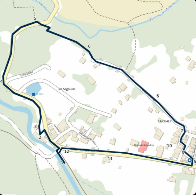 Départ au parking des Ségoins à l'entrée du village (terrain de boules).