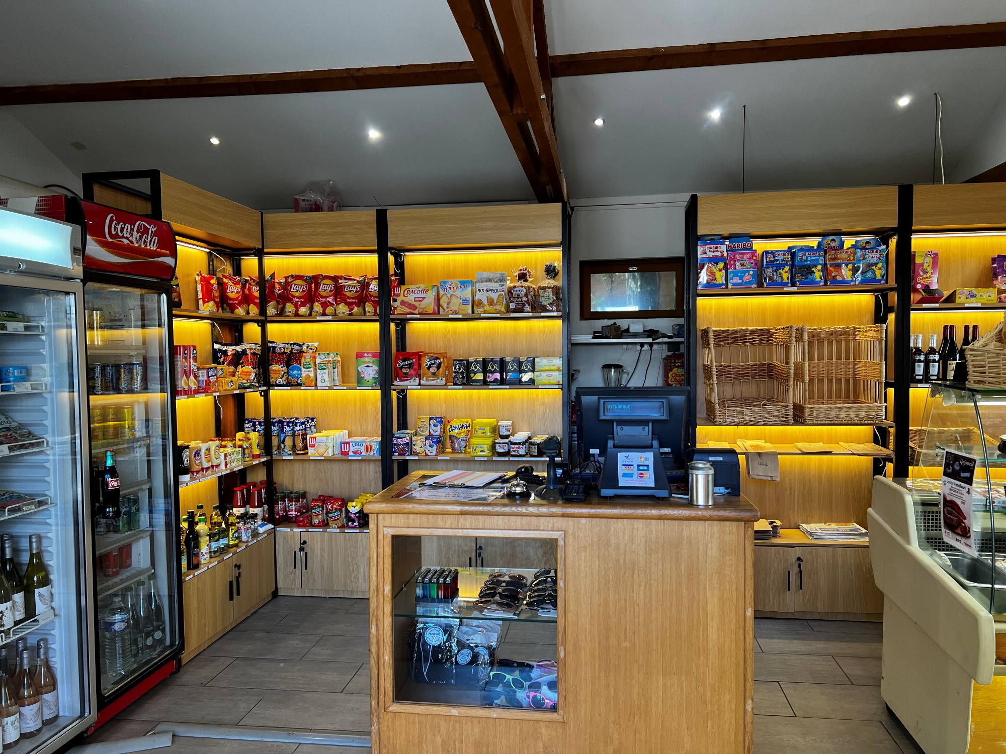 You'll find emergency groceries (bread, pastries, jams, butter, milk, fruit juices, rice, pasta, sweets...) as well as accessories, suncare products, hygiene products...