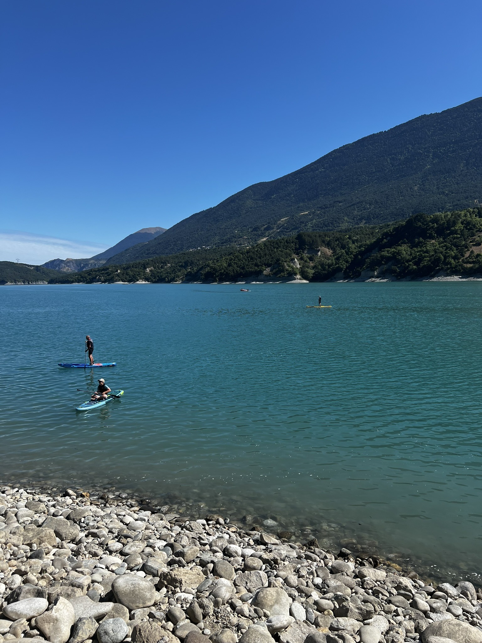 On the shores of Lake Monteynard-Avignonet, with your feet in the water, just a stone's throw from the Ebron Himalayan footbridge,