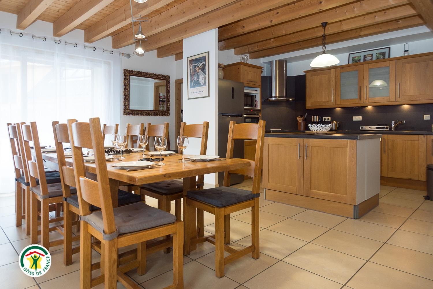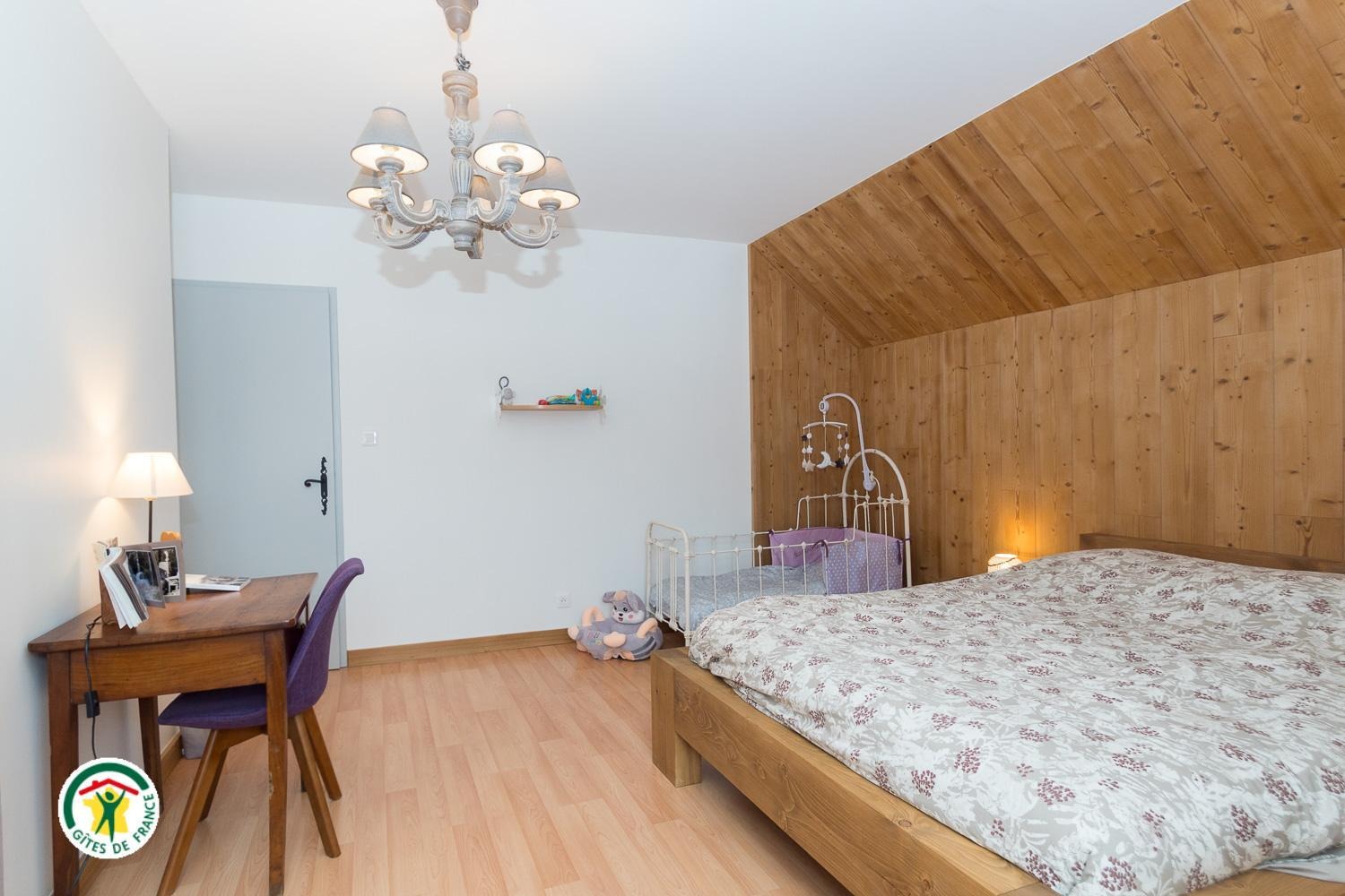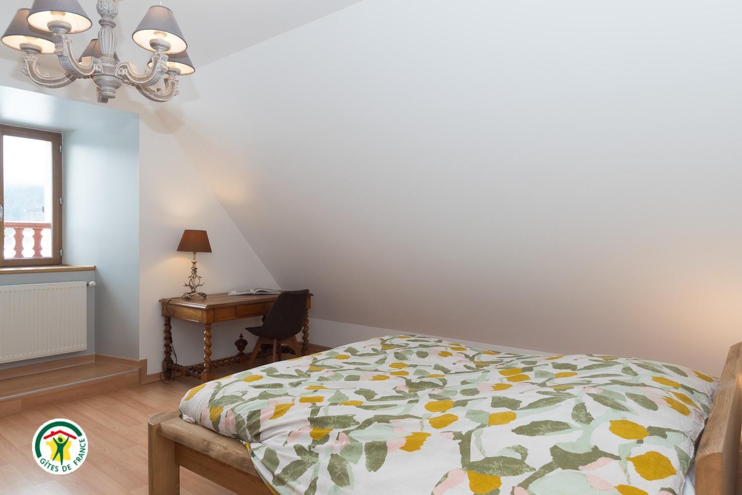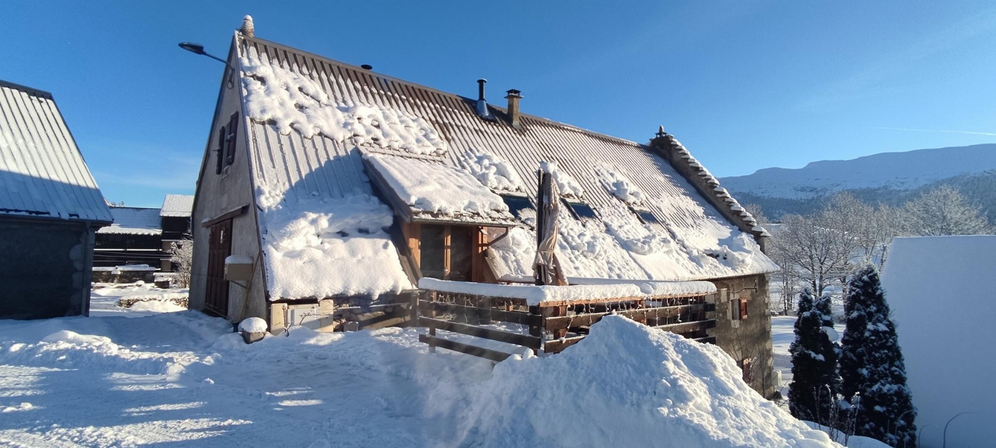 Le gîte de 150 m² face au Grand Veymont se situe à l’étage d’un ancien corps de ferme rénové et bénéficie d’un accès à un grand terrain ombragé et équipé d’une table de pique-nique.