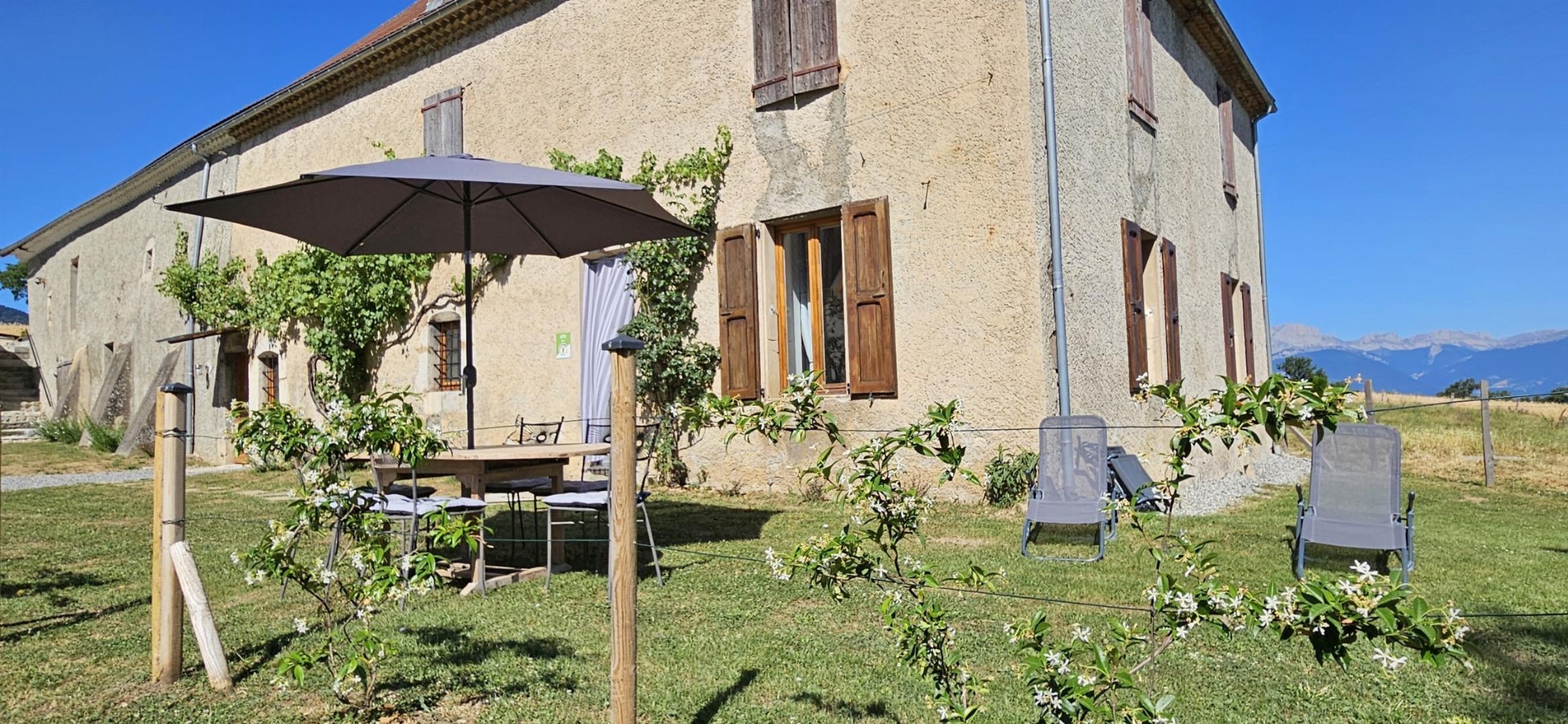 Belle bâtisse traditionnelle de plain-pied située au cœur du Trièves, sur un vaste territoire de nature, à 850m d'altitude entre les massifs du Vercors et du Dévoluy.