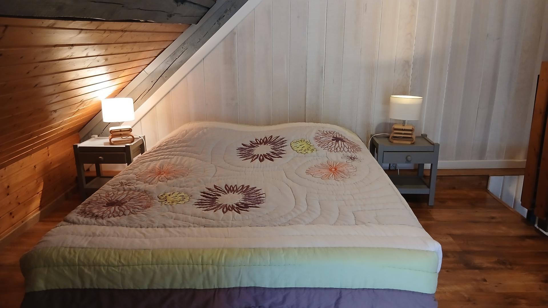 Au 1er, loggia (lit 2 pers.), cheminée, chauffage électrique micro-ondes, congélateur.