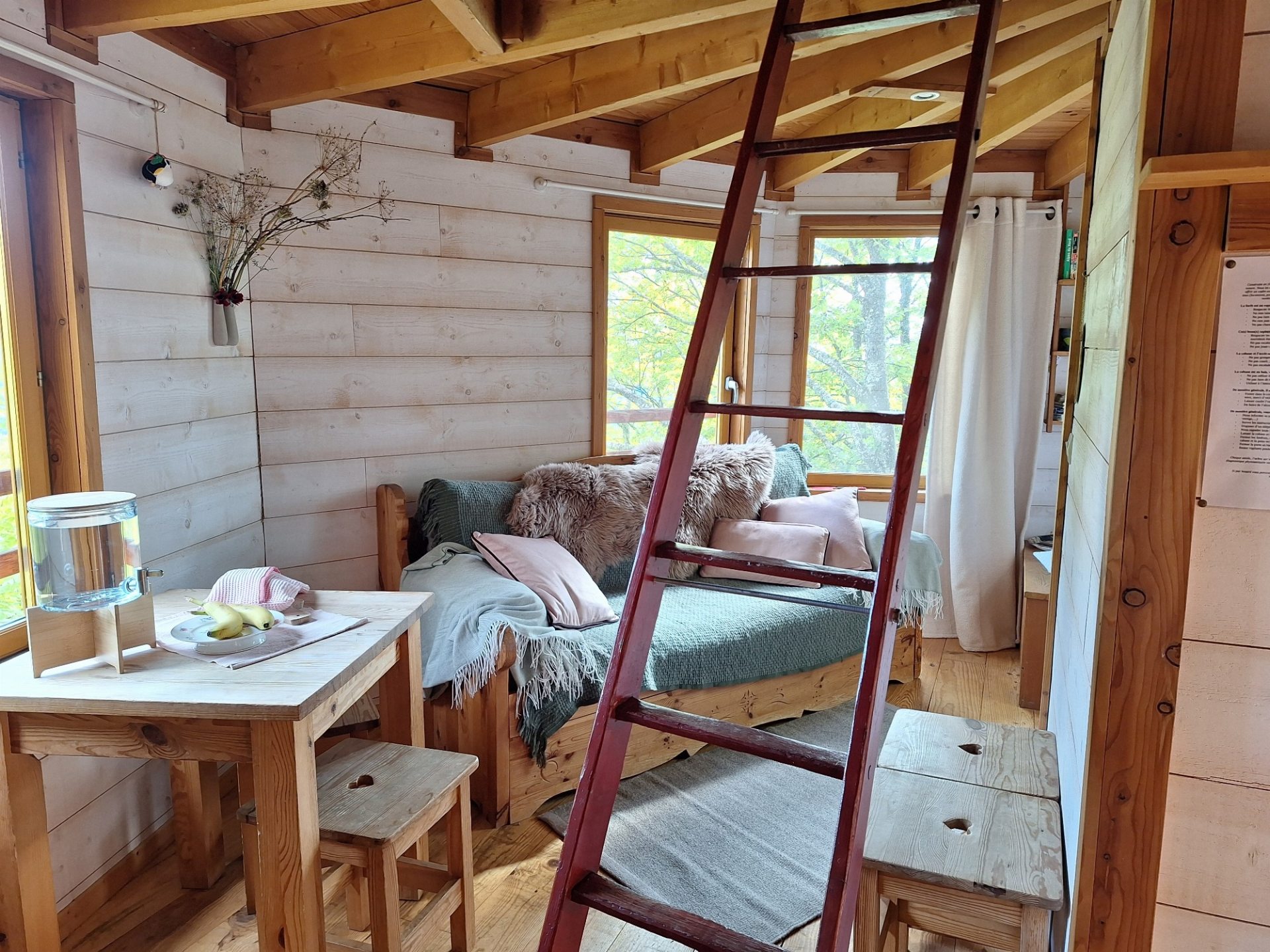 Imaginez-vous, tout là-haut, blottis dans une cabane perchée dans les arbres. Autour de vous, juste la canopée, le souffle du vent et le chant des oiseaux. Lovés dans le canapé avec un plaid, un livre et un thé, ou calés sur la terrasse à profiter de la lumière dorée qui perce à travers les feuilles, respirez, vous êtes tran-quilles !