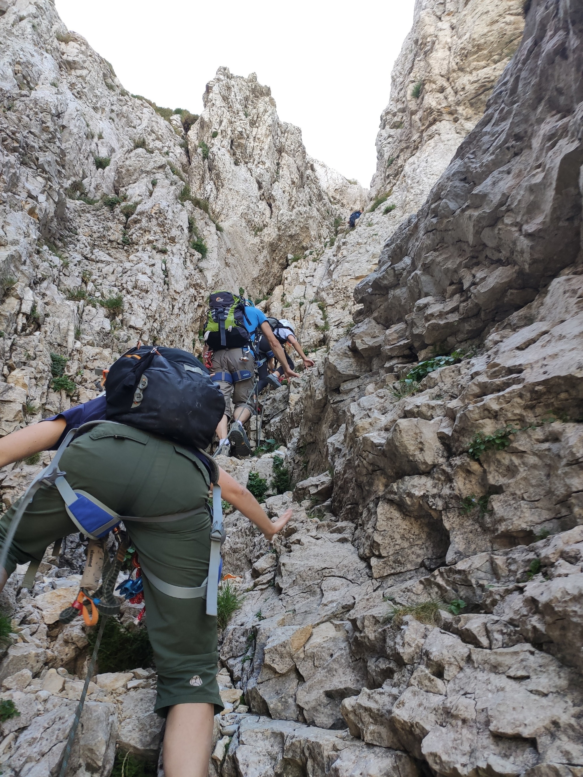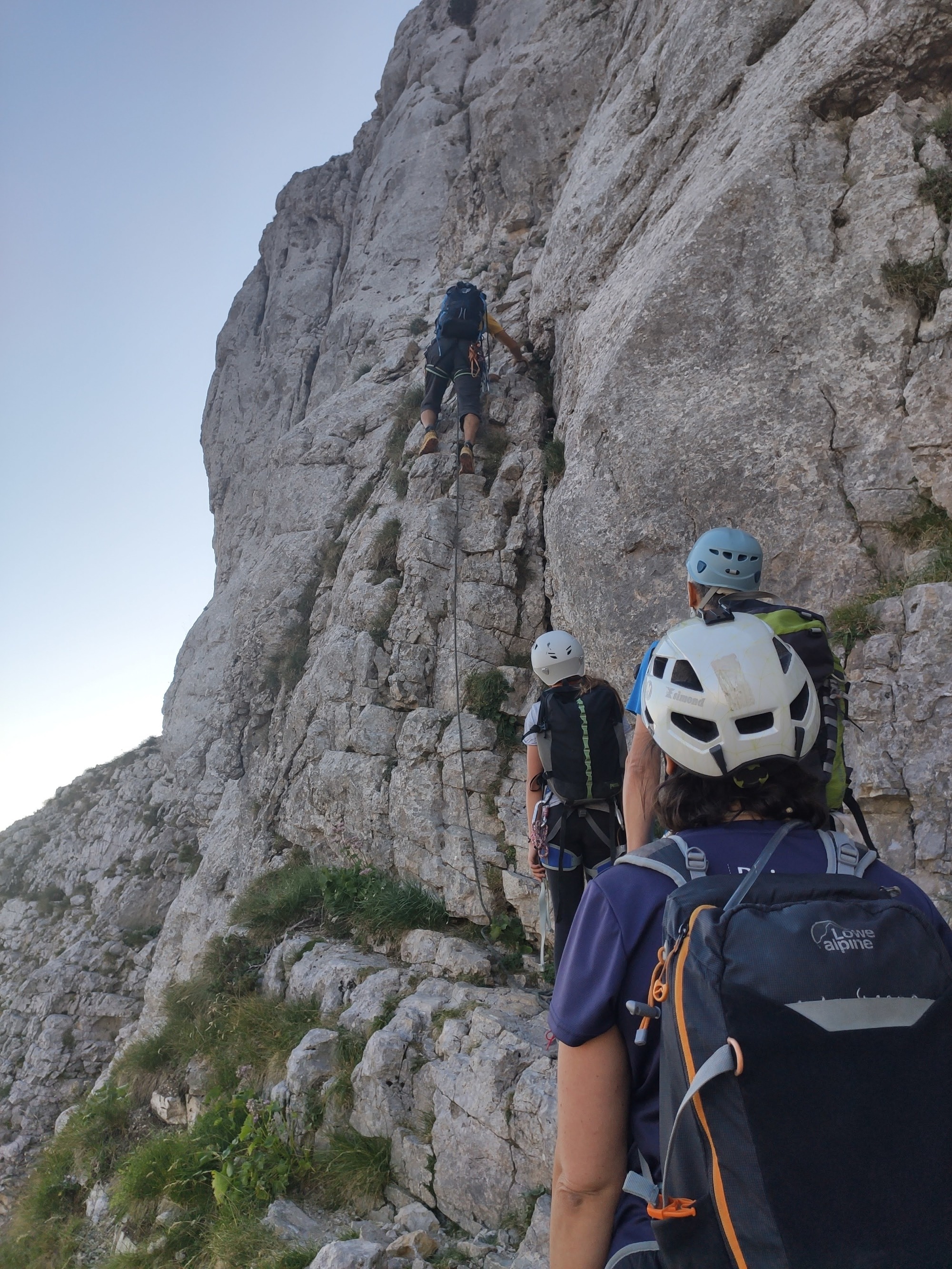 A la croisée de la randonnée, de l'escalade et de la via ferrata, le Mont Aiguille est une initiation à l'alpinisme. Après une montée sur un sentier forestier, nous voici au pied de la voie normale pour progresser encordés le long de la paroi en s'aidant des rochers et des câbles avec pour récompense l'arrivée au sommet et sa vue à 360° sur le Vercors. La descente se fait en passant sous la fameuse arche pour se rendre aux deux rappels qui permettent de rejoindre le sentier forestier. Cette ascension nécessite une condition physique correcte.